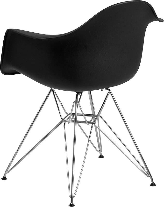 Bucket shaped durable chair with chrome legs for ultimate comfort.