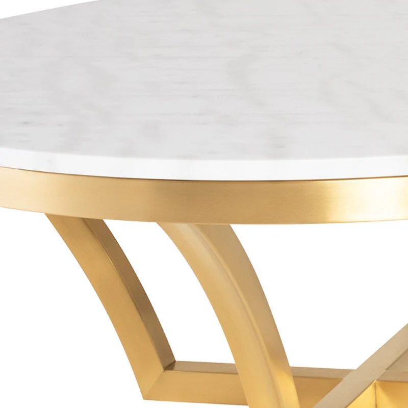 Faux marble top with brushed gold metal base, this coffee table is suitable as a centrepiece.