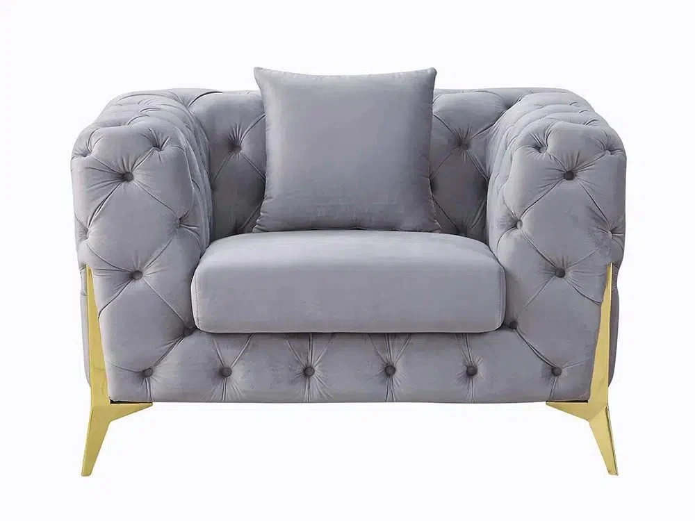 Center your living room around utmost sophistication and charming style with our exquisite sofa. This lounge chair offers your interior space eye-catching aesthetics with its deep channel stitching and soft velvet upholstery, making this piece a perfect modern glam addition for any room. Finished with sleek gold legs, this piece not only secures your decor in refined elegance but also provides incredible relaxation for all. From cozy movie night gatherings to casual conversations, our sofa will have you anchored in style.