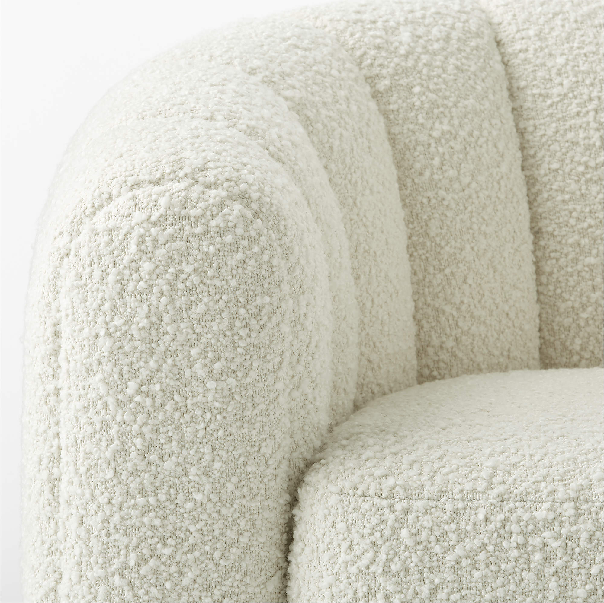 Channel-tufted in rich white boucle, the Fitz Channeled Boucle Swivel Chair makes a vintage statement wherever it sits. This deco-inspired chair offers both style and comfort, making it a perfect addition to any living space.