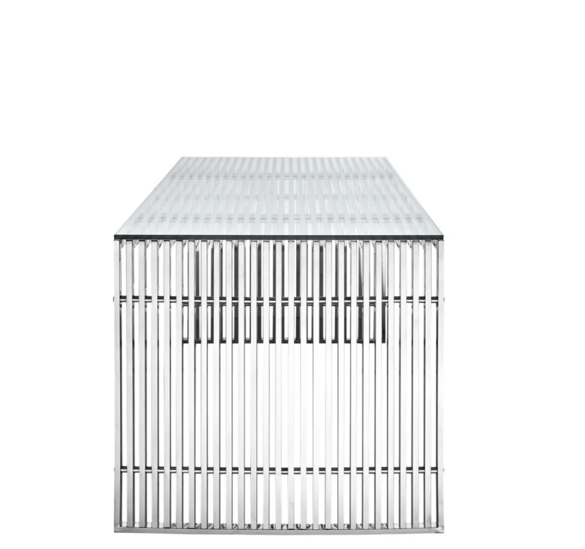 Stainless steel tubing with tempered glass as a table top.